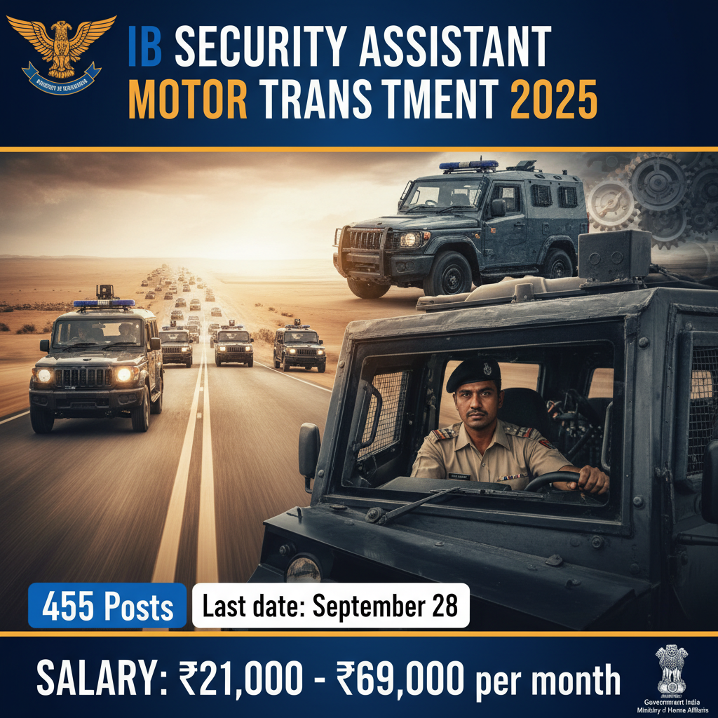 Stable Central Government pay scale and allowances. Candidates with valid driving licenses and experience in Motor Transport services are especially encouraged to apply. |