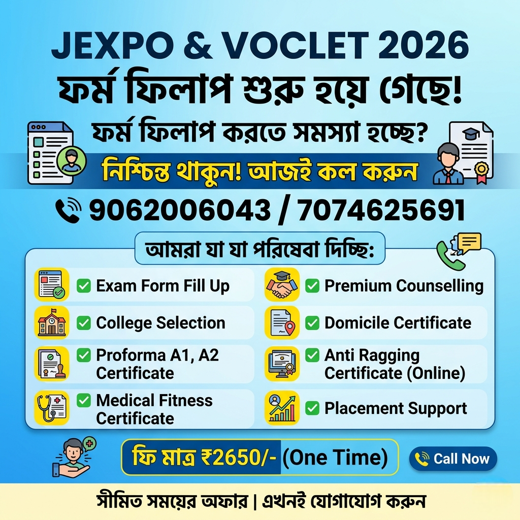 - এককালীন ফি: মাত্র ₹২৬৫০/- (সম্পূর্ণ অ্যাডমিশন প্রসেস কভার করবে)।