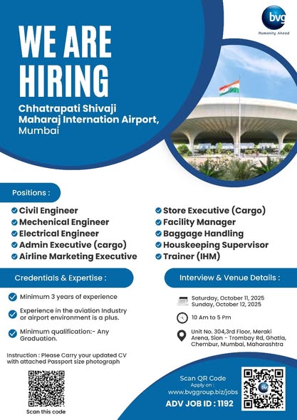 Your career in aviation can take off here! Chhatrapati Shivaji Maharaj International Airport in Mumbai is inviting talented professionals to join its team and help keep one of India’s busiest airports running smoothly. This is more than just a job; it’s an opportunity to build your career in a dynamic, high-paced, and global industry.