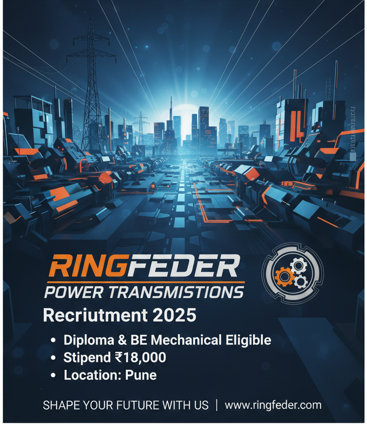 Ringfeder Power Transmissions Pvt Ltd is inviting applications from Diploma Mechanical and BE Mechanical graduates for its Apprenticeship and Training Program. This is an excellent opportunity for freshers to kick-start their career in the manufacturing sector.